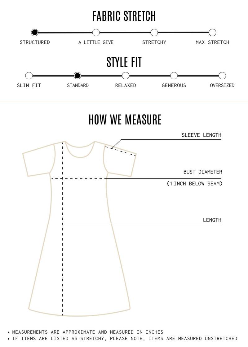 - Medium: Size 6-8, Bust: 16.5", Waist: 15.5", Length: 49"